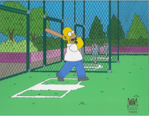 This is an original hand painted production cel. This was used in making an episode of "The Simpsons". Episode titled "Bart the Mother" September 27, 1998. Featured here is Homer Simpson.