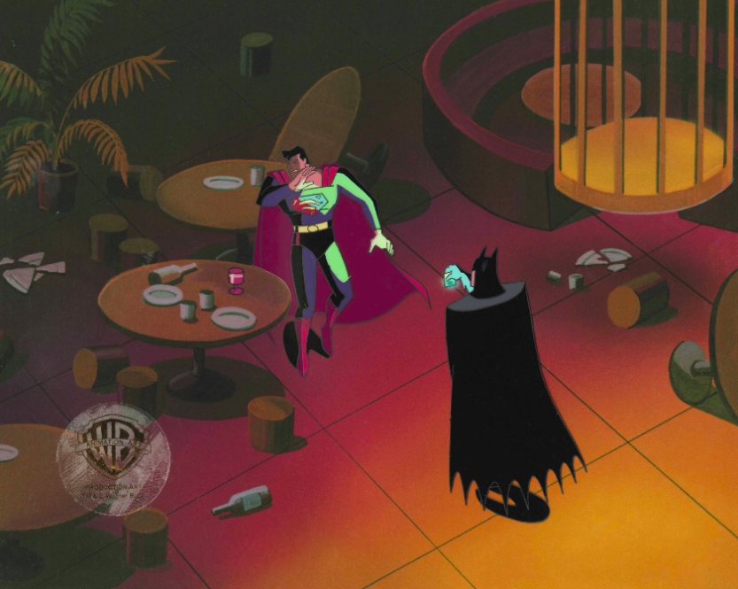 This is an original production cel used in making Superman: The Animated Series: "World's Finest Part 1". Featured here are Batman and Superman.