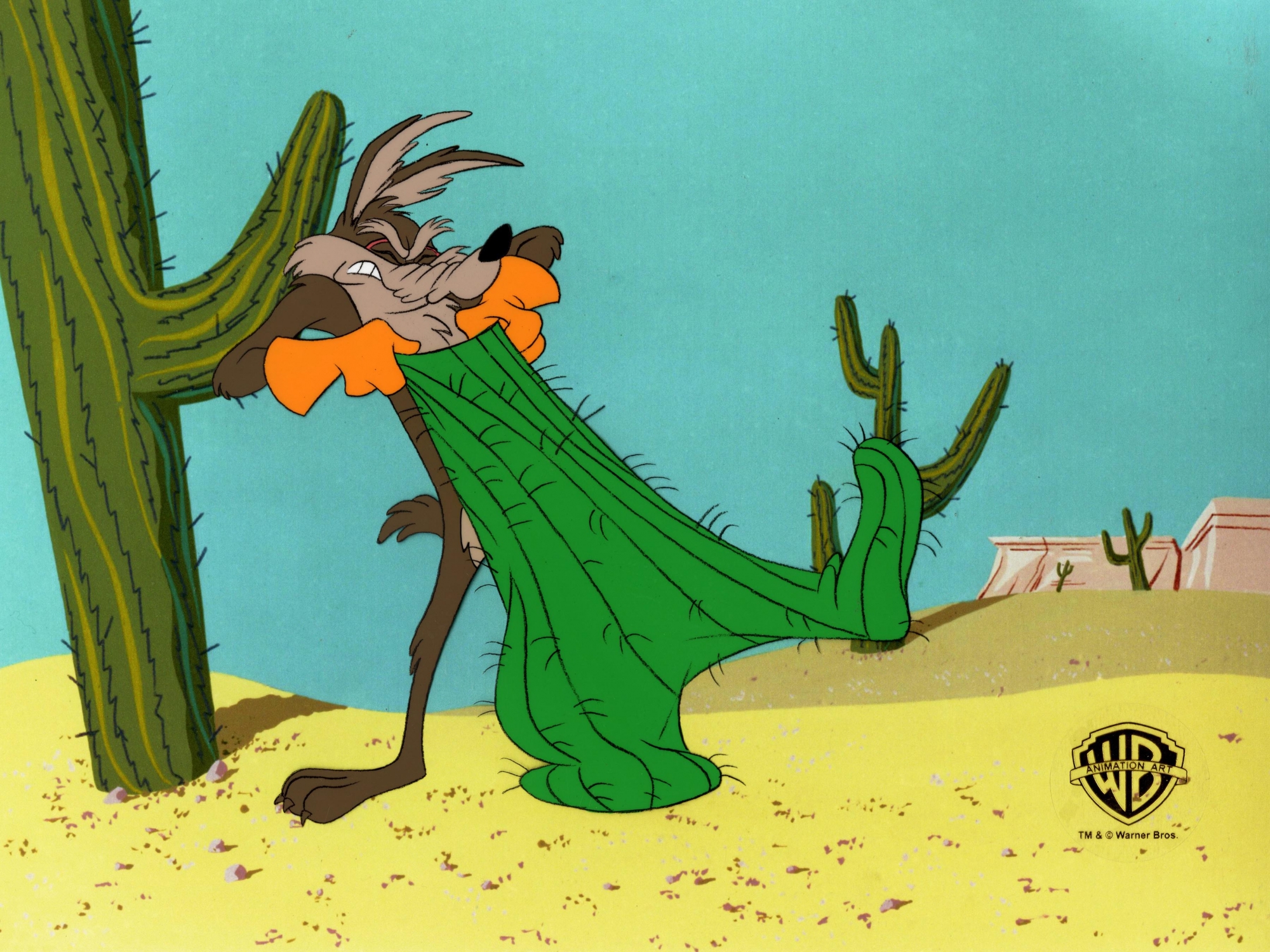 This is a hand painted original production cel used in making "Chariots of Fur" 1994. Featured here is Wile E. Coyote.