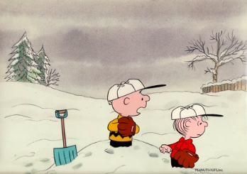 This is an original hand painted production cel used in making "It's Spring Training, Charlie Brown" 1992. Featured here are Charlie Brown and Linus. Comes with 2 animator's original drawings.
