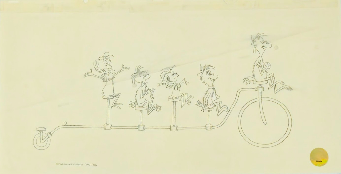 This is an original production drawing used in making "How The Grinch Stole Christmas" 1966. Featured here are the Whos. This is signed by Chuck Jones. Unframed only.