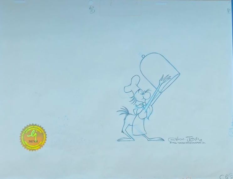 Original production drawings are one-of-a-kind pieces of animation art. Prior to the creation of cels, each character pose and action must be drawn in pencil. These drawings are the artistic backbone of the film or television show, and are much in demand by collectors.