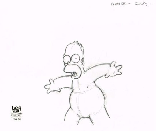 This is an original production drawing used in making The Simpsons. Episode 2F13 title "Bart vs Australia" February 19, 1995. Featured here is Homer Simpson.