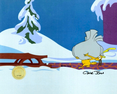 This is an original hand painted production cel used in making "How The Grinch Stole Christmas" 1966. Featured here is one of the Whos. This has been signed by the late Chuck Jones. Available unframed only.