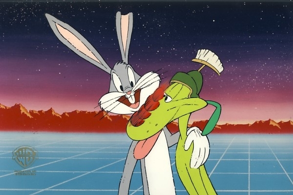 This is an original hand painted production cel from "Lunar Tunes" 1991 Featured here is Bugs Bunny and K-9.500