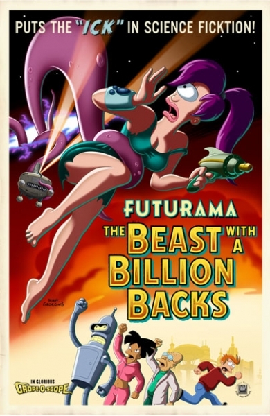 This is a limited edition giclee on paper. In Futurama's latest and most tentacle-packed epic, space itself rips open, revealing a gateway to another universe. But what lies beyond? Horror? Love? Or maybe both, if it happens to contain a repulsive, planet-sized monster with romantic intentions! Nothing less than the fate of human and robot-kind is at stake as the Futurama crew takes on "The Beast with a Billion Backs."