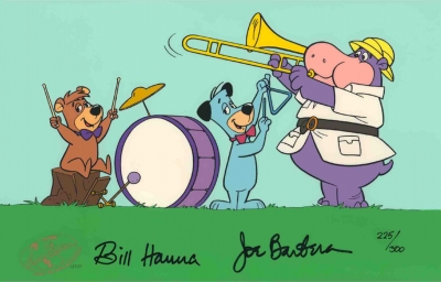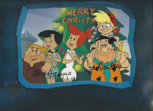This is an original hand painted production cel from "Flintstone Family Christmas". This is signed by the late Bill Hanna and Joe Barbera. SOLD CALL FOR SIMILAR IMAGES.
