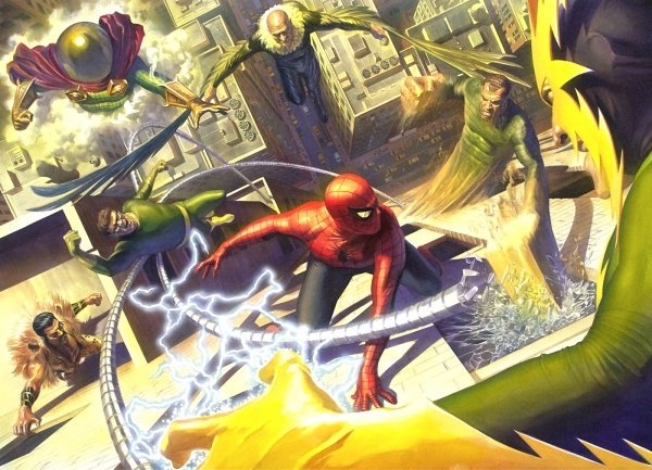 This is a limited edition giclee on canvas. The Sinister 6 made their first appearance in The Amazing Spider-Man Annual #1 in 1964. Created by writer and editor Stan Lee and illustrator Steve Ditko, Doc Octopus enlist Spider-Man enemies to help him defeat Spider-Man. Alex Ross pays homage to these original super villains in his rendition of The Sinister 6. Each piece of the edition has been numbered and is signed by Alex Ross. Each canvas comes with a signed giclee print of the original pencil sketch by Alex Ross of Sinister 6. The giclee pencil sketch is approx 11 x 14 and signed by Alex Ross. An additional $125 will be added to have this sketched framed.1100