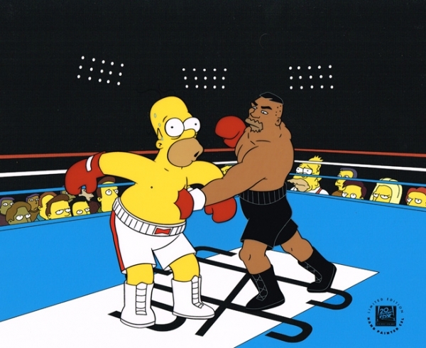 This is a hand painted limited edition cel on giclee background and is inspired by a scene from "Homer They Fall."450