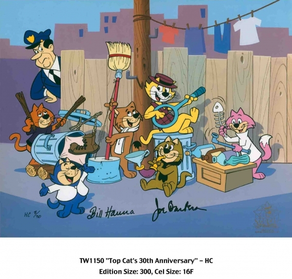 This is a hand painted limited edition cel. Signed by the late Bill Hanna and Joe Barbera. Featuring Top Cat. SOLD OUT EDITION, CALL FOR PRICE AND AVAILABILITY.