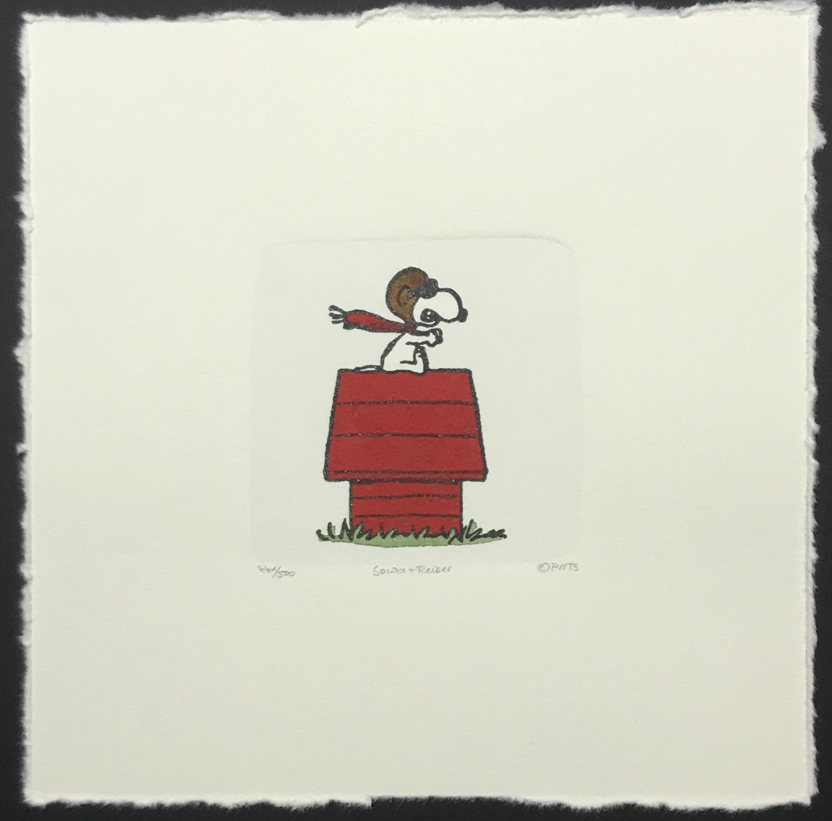 Snoopy is the Red Baron in this hand painted animation art etching. Featured here is Snoopy from The Peanuts. Available framed for only $129US!.