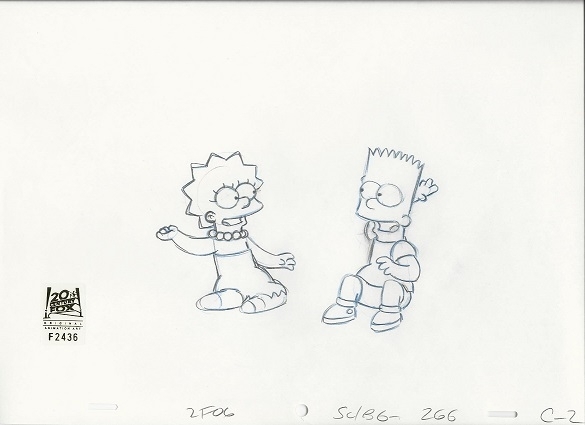 This is an original production drawing used in making an episode of "The Simpsons". Featured here is Bart Simpson and Lisa Simpson.180