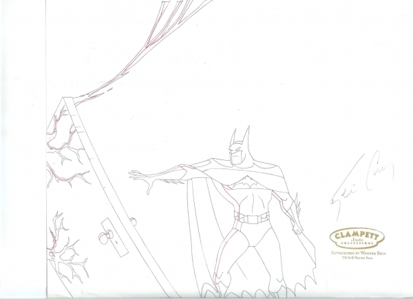 This is an original production drawing of Batman. This is signed by Kevin Conroy.325