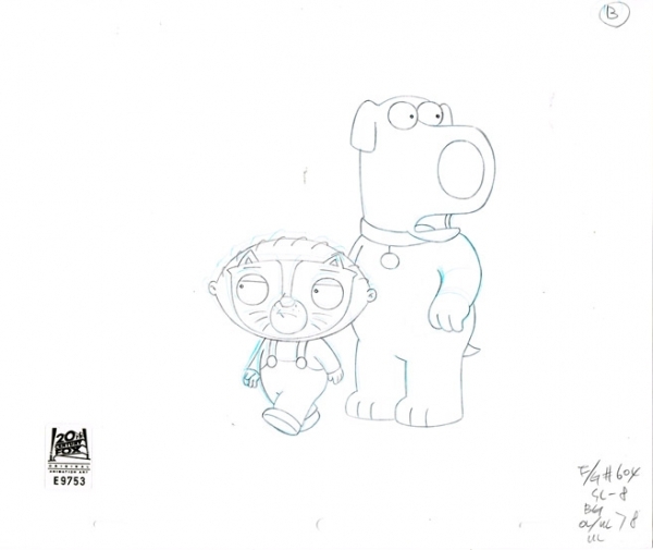 Original production drawings are one-of-a-kind pieces of animation art. Prior to the creation of cels, each character pose and action must be drawn in pencil. These drawings are the artistic backbone of the film or television show, and are much in demand by collectors.