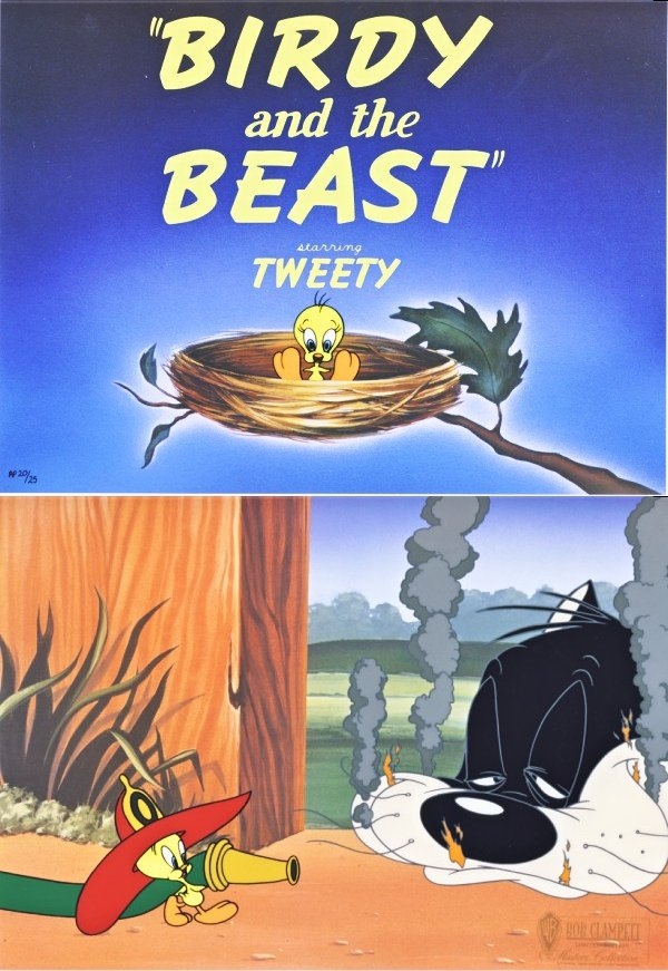Sold out hand-painted cels featuring Sylvester and Tweety. ONE SET ONLY!