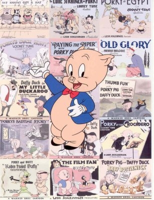The fourth in the Lobby Card series presents Porky Pig, Looney Tunes first star! The background features lobby card images from many of Porky's most famous Looney Tunes cartoons.