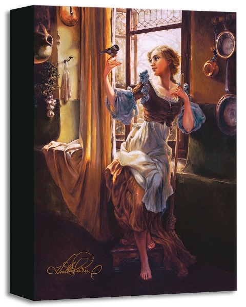 This is a limited edition giclee on canvas. As part of the Walt Disney Treasures Series this wonderful canvas offers the Disney collector a great introductory point to the world of collecting animation art. Each piece is gallery wrapped. Disney Fine Art Treasures On Canvas come ready to hang...collect them all! Featured here is Cinderella.