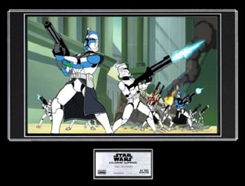 This limited edition giclee features the most advanced tactical squad of Clone Troopers, The Arc Troopers. The scene is found on the planet of Muunilinst in Chapter 3 of the hit series. Comes with an engraved title tag bearing the handwritten number in this exclusive edition. Each piece also includes a certificate of authenticity from Lucasfilm Ltd.