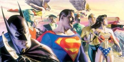 This colorful and dynamic limited edition by Alex Ross features Batman, Martian Manhunter, Black Canary, Hawkgirl, Green Arrow, Superman, Green Lantern, Hawkman, Aquaman, Wonder Woman & The Flash. “In the Light of Justice” was originally created as a triptych, each of the three panels featured as cover art for Wizard Magazine. Under Ross’s supervision, the three images were digitally united to create the final image. Each is hand signed by Alex Ross. This is an oversized canvas and is available unframed.
