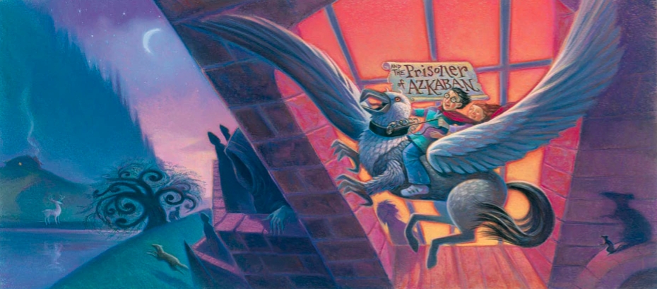 This image is taken from the book cover for "Harry Potter and The Prisoner of Azkaban",the third in the seven-book series by esteemed writer J.K. Rowling. The original image was drawn and painted by noted artist Mary GrandPre. This is a limited edition giclee on paper. Each is hand signed by Mary GrandPre.