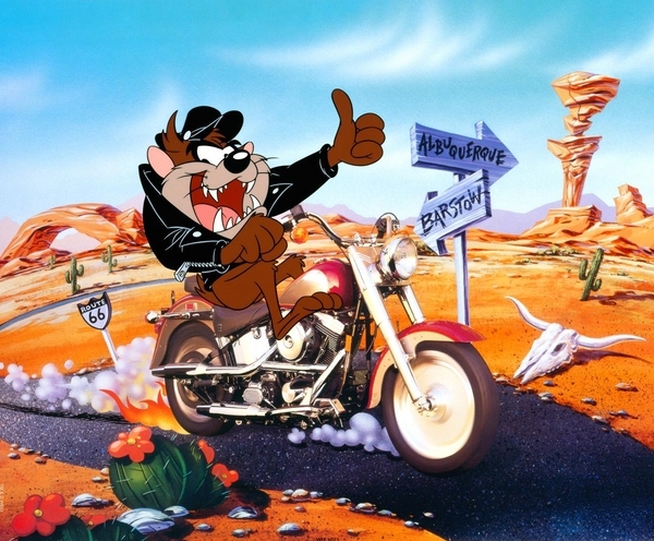 Nothing beats a hawg ridden by a hawg-wild Tasmanian Devil out on the open highway. But that’s what you get with this piece; a venerable animation icon atop the two-wheeled icon of the Fatboy, which has helped give Harley-Davidson, as well as Taz, their place as household names. The background for “Hawg-Wild Devil,†was custom painted and computer enhanced. Both it and the image of Taz and the Fat Boy were printed using the Giclee process.