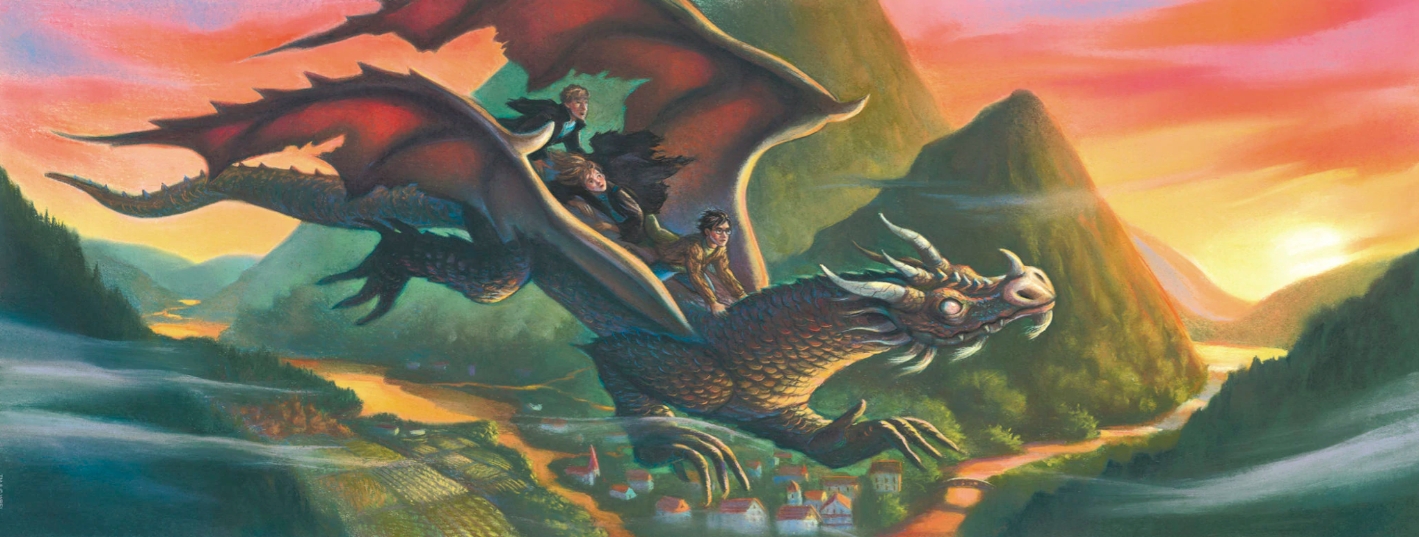 This image is taken from the deluxe book cover for "Harry Potter and The Deathly Hallows", the 7th and final book in the seven-book series by esteemed writer J.K. Rowling. The deluxe book cover was created for a special limited edition slip-covered version of the 5th book. The original image was drawn and painted by noted artist Mary GrandPre. This is a limited edition giclee on paper. Due to the large size this is available unframed only.
