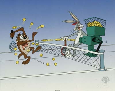 Taz has bitten off more than he can chew when he faces Bugs Bunny in a tennis match.