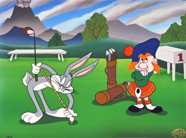 This is a hand painted limited edition cel featuring Bugs Bunny and MacRory. Last one in the edition.