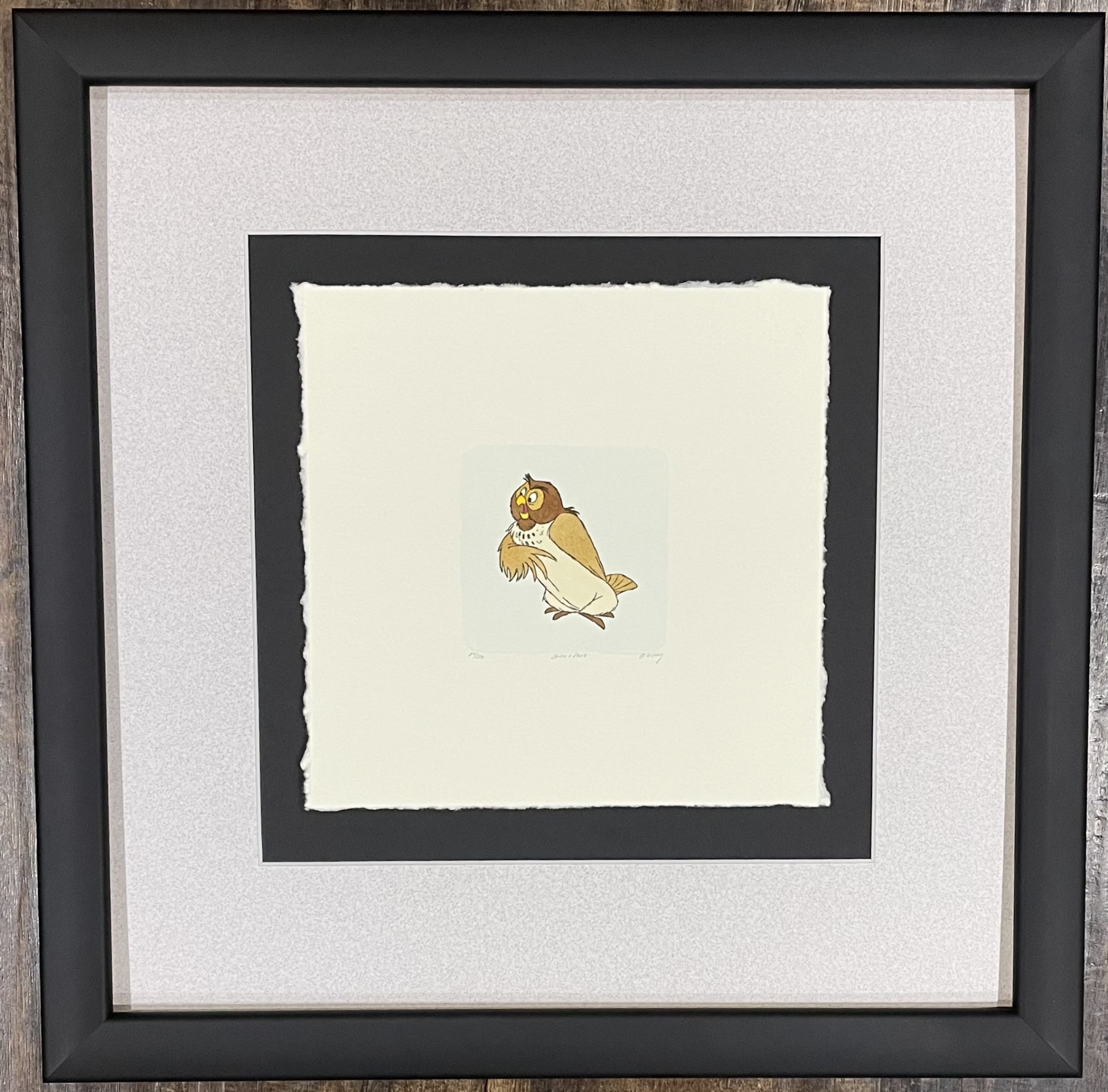 The Hundred Acre Wood's ever-wise Owl from "Winnie the Pooh" is depicted in this animation art etching. Available unframed for only $75US!.
