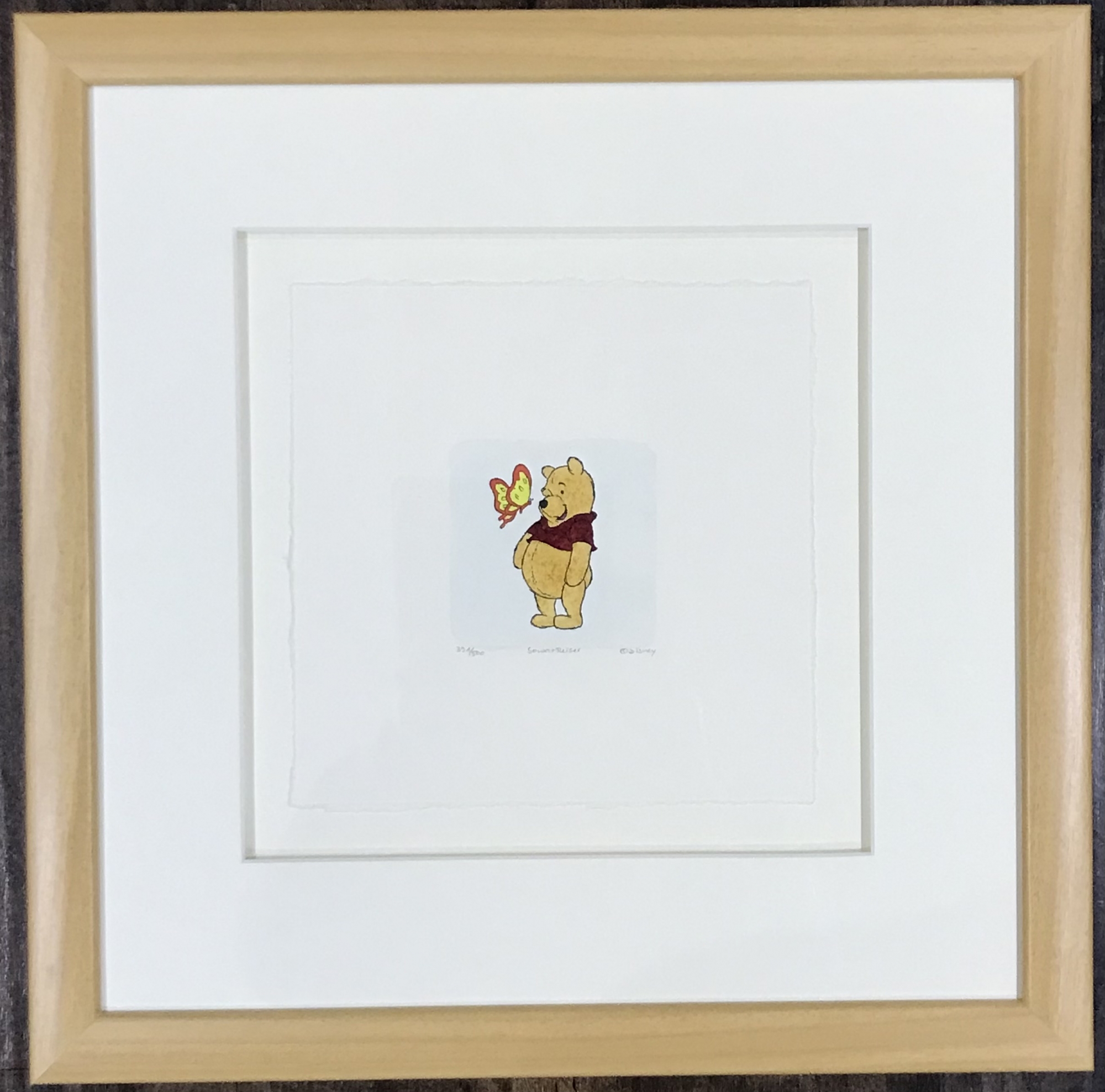 In order to create limited edition etchings, a studio-authorized artist etches or scrapes an image into a copper plate. This plate is then inked and pressed into high-quality acid-free rag paper to create the black outline of the character. Each piece is then meticulously hand-painted with watercolours to bring the image to life.