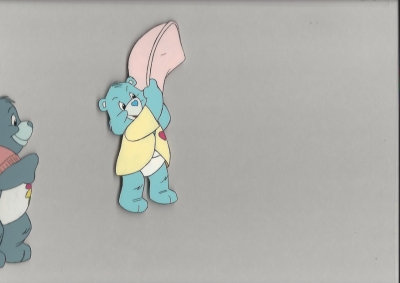 Production cels are the one-of-a-kind original cels that were used in the creation of an animated film or television show. Each has been hand-painted by studio artists on a piece of celluloid acetate, and has been photographed over a background painting to create a frame of the finished production.