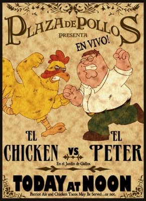 Today at noon, Peter Griffin takes on his greatest challenge to date... The Chicken! Who will win? Man or Fowl? There can be only one! SOLD OUT EDITION.