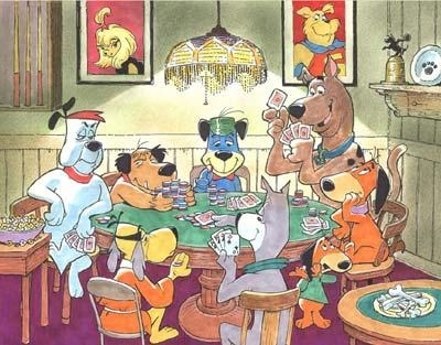 Poker can be a dogs game, too. Designed and illustrated by esteemed long-time Hanna-Barbera Artist, Bob Singer, Five Paw Draw features some of Hanna-Barbera's favorite canine characters, including Scooby-Doo, Augie Doggie and Doggie Daddy, Astro, Huckleberry Hound, Hong Kong Phooey, Reddy (from Ruff 'n Reddy) and Mutley. Though some canines, such as Mutley, had a relatively short run (1969-1971), Hanna-Barbera dogs such as Scooby-Doo has enjoyed an uninterrupted run since 1969. This version of the edition is hand signed by Bob Singer with a remarque Scooby Doo drawing.