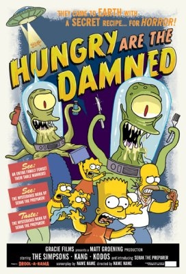 Homer Simpson, Marge, Bart, Lisa & Maggie are on the run from Kang and Kodos in this B-Movie style Limited Edition Giclee inspired by The Simpsons episode "Hungry Are The Damned" from the first Treehouse of Horror Halloween Special. SOLD OUT EDITION CALL FOR AVAILABILITY.