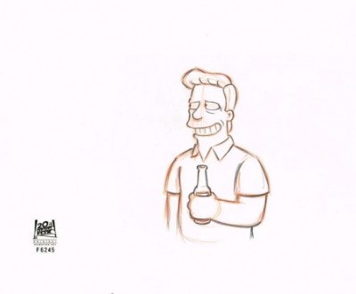 This publicity image from "The Simpsons Movie" features Homer running from an angry mob of Springfieldians. This limited edition is composed of a painted cel layer of Homer with the citizens of Springfield printed as a fine art giclee background. This edition is now sold out. Last one available.