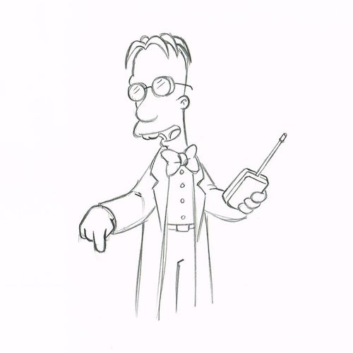 This is an original production drawing used in making an episode of "The Simpsons". Featured here is Professor Frink. SOLD CALL FOR SIMILAR IMAGES.