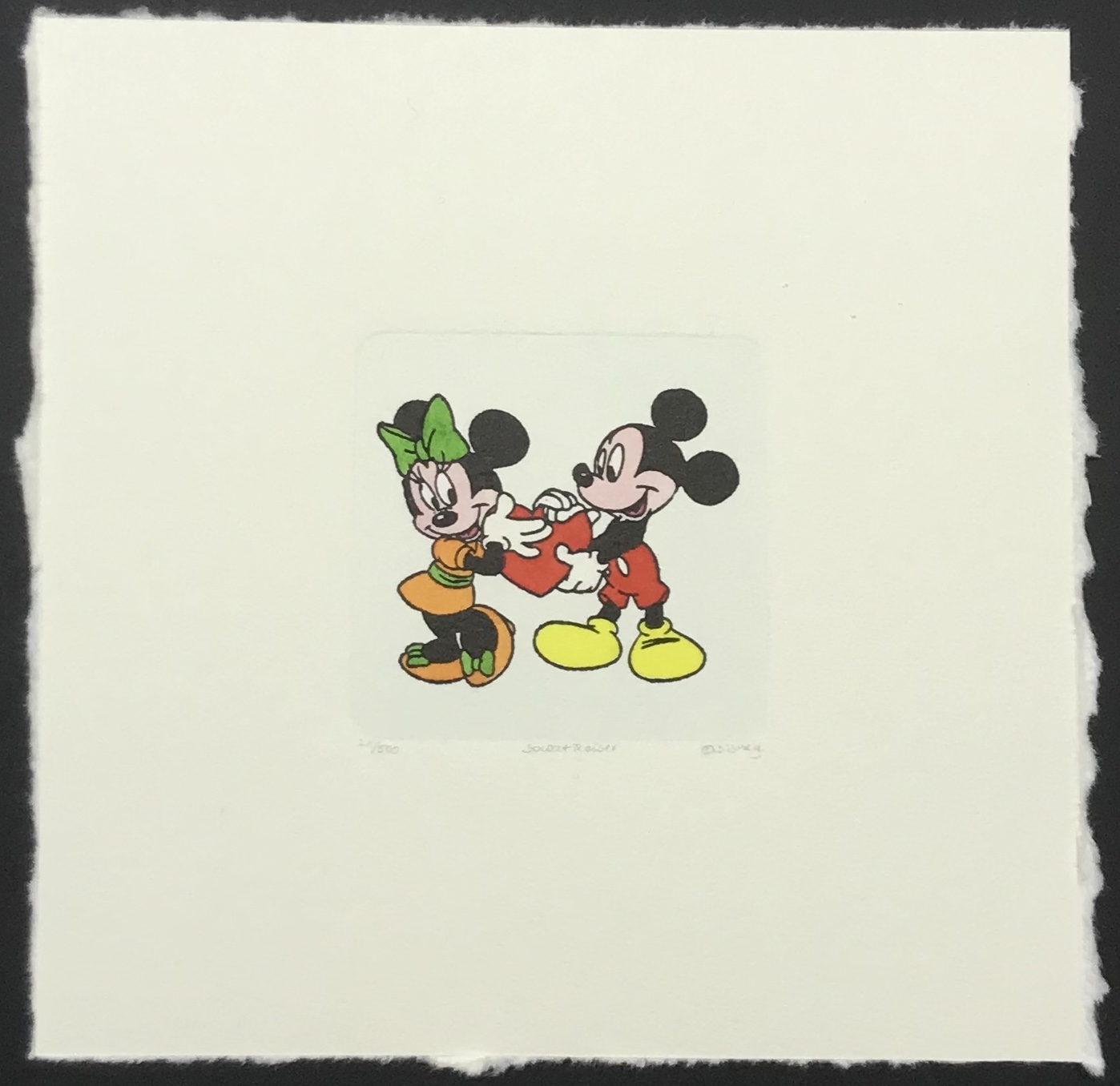 This is a hand painted limited edition etching. Featured here are Mickey and Minnie. Signed by artist Sowa and Reiser. Available framed for only $129US!