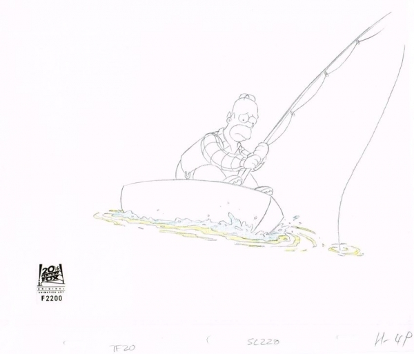 This is an original production drawing used in making an episode of "The Simpsons". Featured here is Homer Simpson. Episode title "The War of The Simpsons" 1991.200