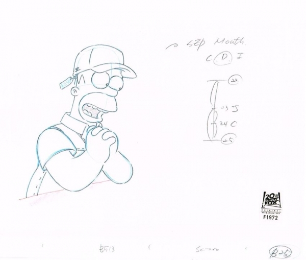 This is an original production drawing used in making an episode of "The Simpsons". Featured here is Homer Simpson.200