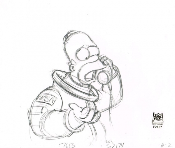 This is an original production drawing used in making an episode of "The Simpsons". Episode title "Deep Space Homer" 1994. SOLD CONTACT US FOR SIMILAR IMAGES.