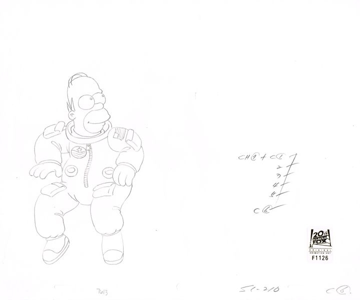This is an original production drawing used in making an episode of "The Simpsons". Episode title "Deep Space Homer". Featured here is Homer Simpson.