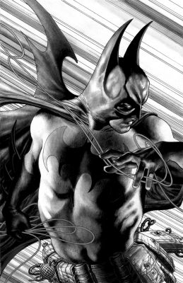 This is a limited edition giclee on canvas. The piece was included in renowned DC artist Alex Ross's graphic novel, Liberty and Justice. It features the seven famed DC Comics characters from the Justice League, an interplanetary team of crime fighters and superheroes. A master of composition, Alex utilized a particularly dynamic perspective with the DC heroes here are often seen in more traditional flying poses. Alex is one of the most respected contemporary artists working today. This year he had a show at the Andy Warhol Museum, and his work was part of a group show at the Metropolitan Museum in New York. Each piece is personally signed by Alex Ross.1250