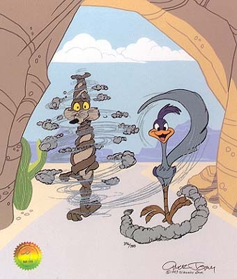 Once again the Road Runner has Wile E. Coyote tied up in knots in this great limited edition animation cel. This is personally signed by Chuck Jones.