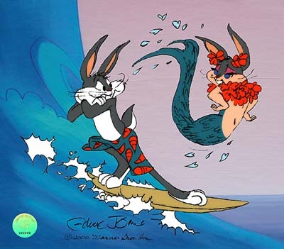 Bugs Bunny spies a Mer-Bunny as he surfs the perfect wave in this hand-painted limited edition cel estate signature Chuck Jones. 1150