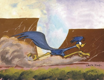 The Road Runner is on the run from the always hungry Wile E. Coyote in this limited edition giclee on canvas.