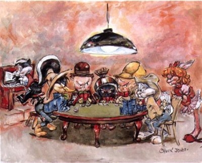 Its a full-house of classic Looney Tune characters (Bugs Bunny, Elmer Fudd, Daffy Duck, Porky Pig, Marvin Martian & Pepe le Pew) playing poker in this limited edition giclee on canvas.