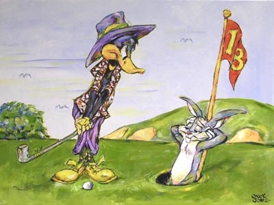 Bugs gets in the way of Daffy's golf game in this limited edition giclee on canvas.