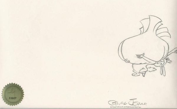 Original production drawings are one-of-a-kind pieces of animation art. Prior to the creation of cels, each character pose and action must be drawn in pencil. These drawings are the artistic backbone of the film or television show, and are much in demand by collectors.