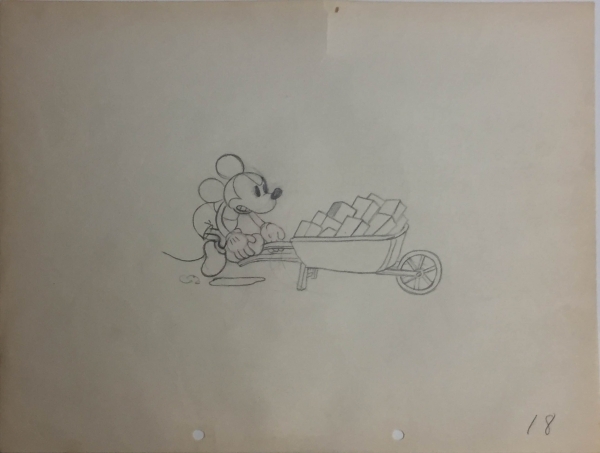A beautiful original production drawing from the Disney cartoon "Building a Building", 1933. It features a classic Mickey Mouse.