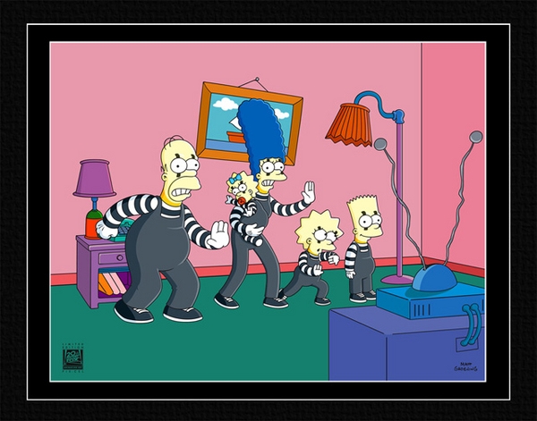This image is one of the popular couch gags used in the episode opening of The Simpsons. This gag features the Simpsons family sitting on the couch as babies. This is a limited edition Pixcel.